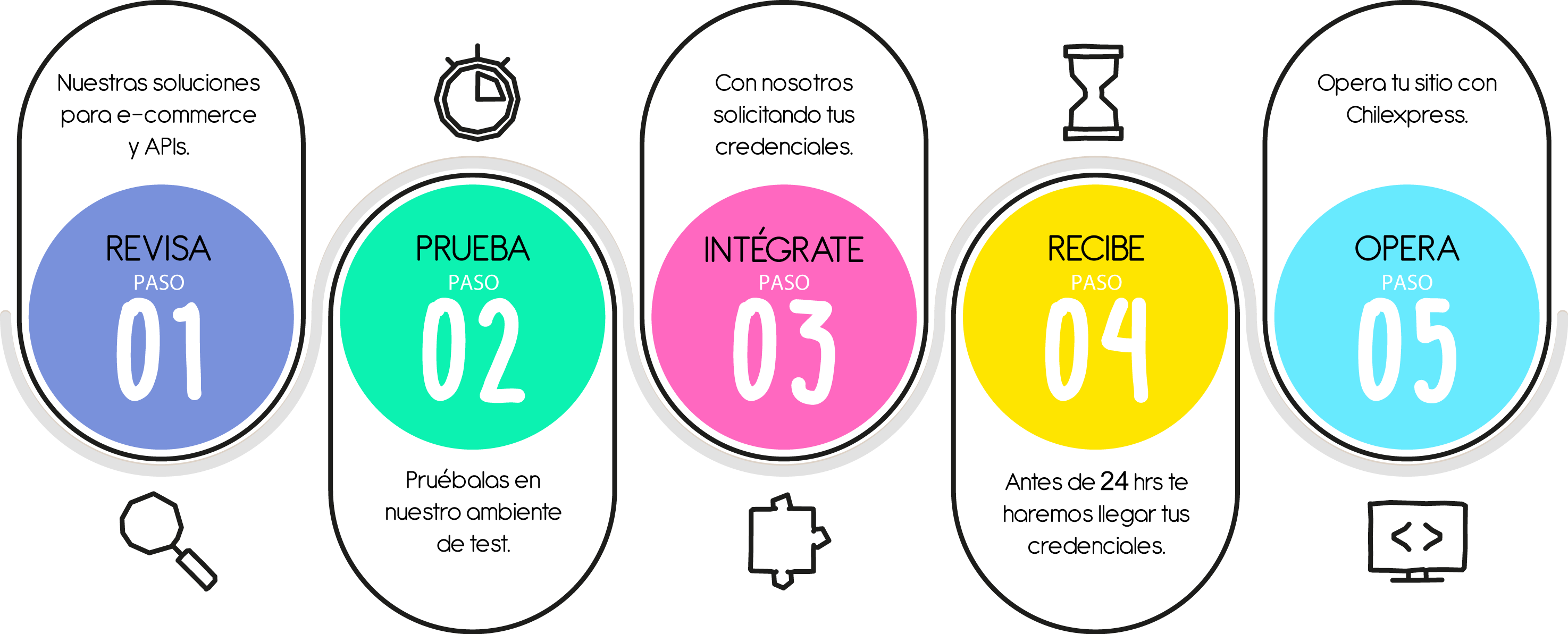 *La creación de tu ecommerce en una de las plataformas anteriores debe ser gestionada directamente con cada patner. Y a través de Chilexpress se obtienen las credenciales de acceso a nuestro ambiente productivo.